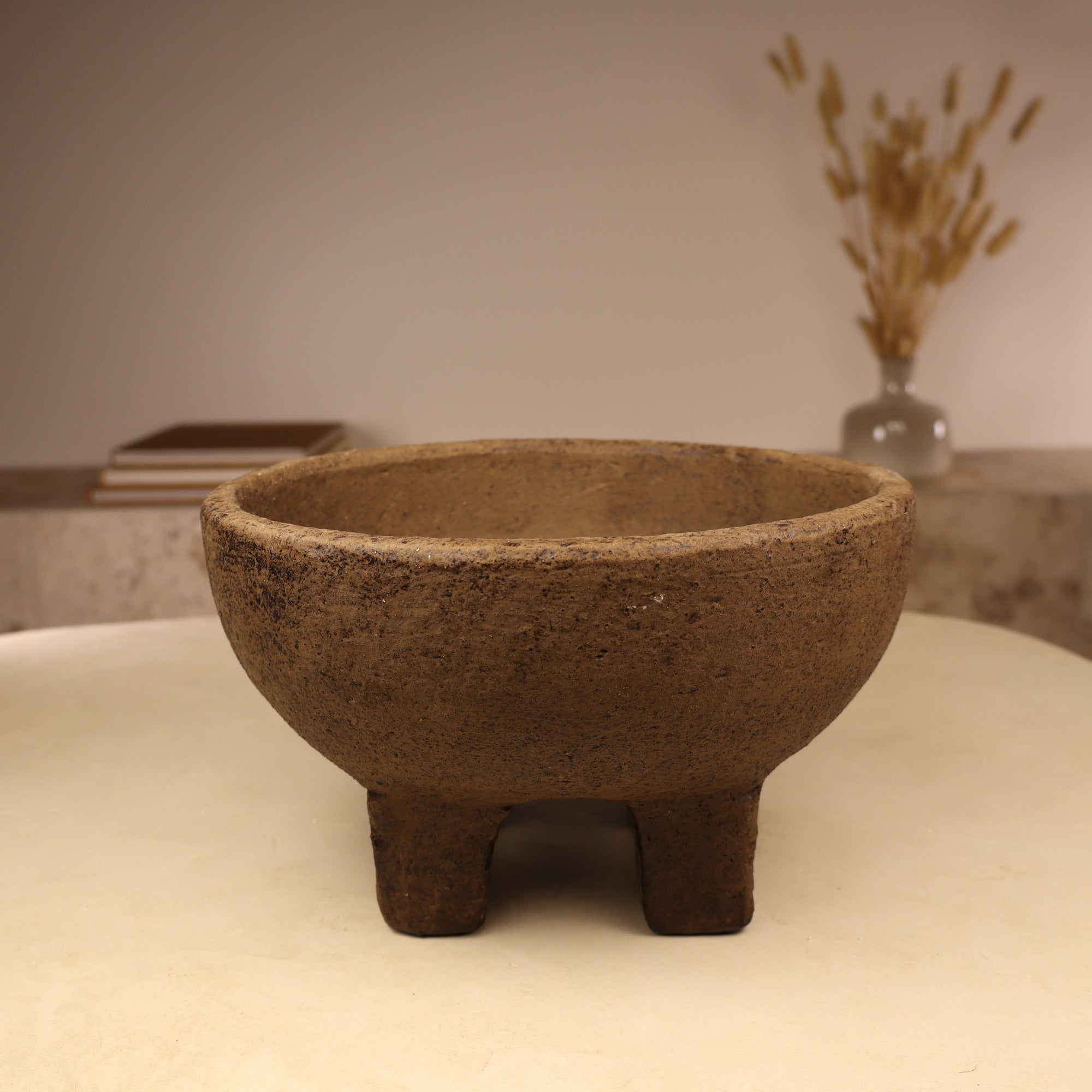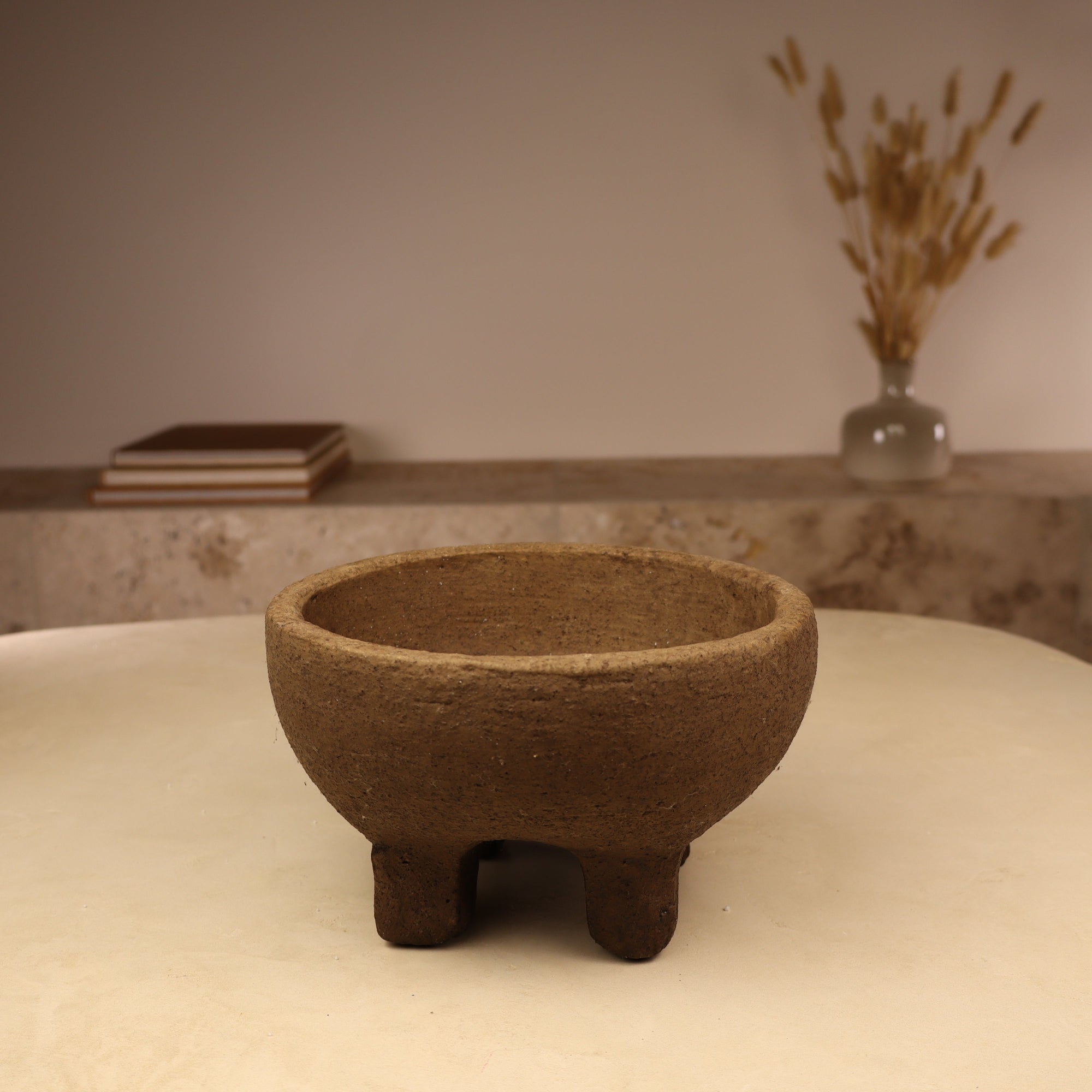 Avec ses lignes épurées et sa forme surélevée reposant sur quatre pieds, ce contenant en terre cuite apporte une élégance discrète et structurée à votre intérieur.